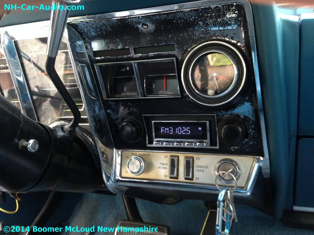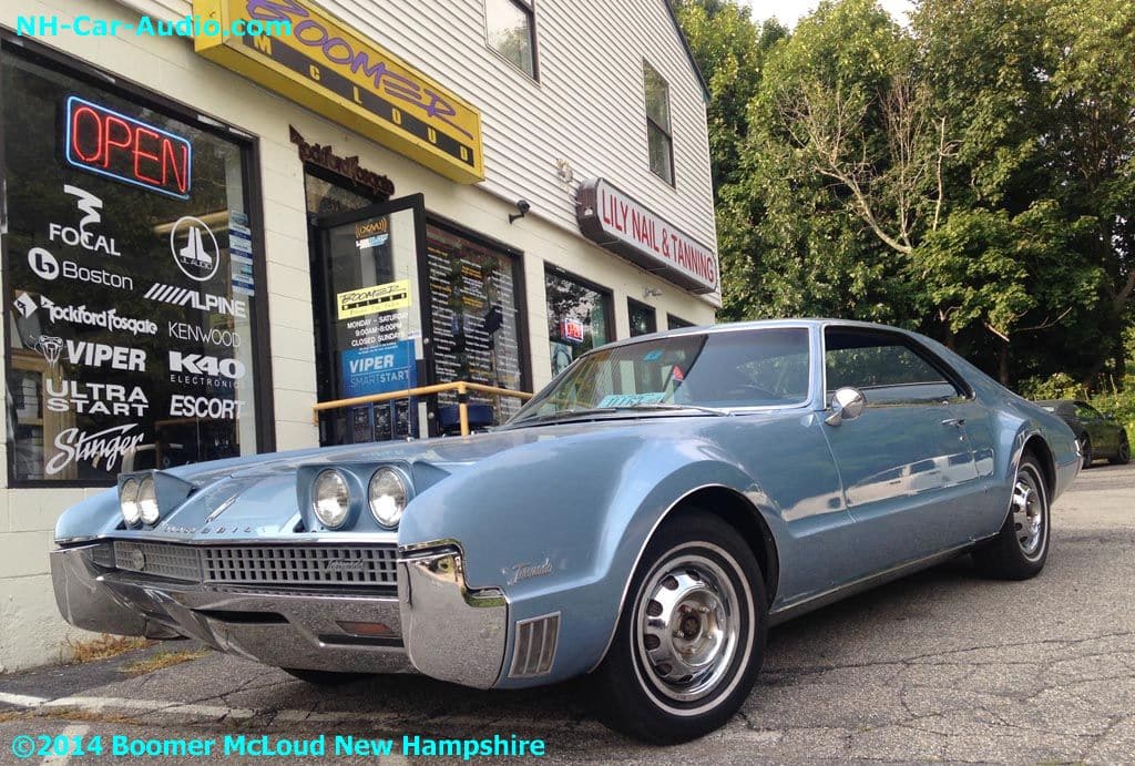 This Oldsmobile Toronado Custom radio installation received a retro look radio and a hidden amplifier to maintain its classic look.  A personal favorite of mine for years, the Toronado was the first Front Wheel drive car since 1937 when they stopped making the Cord. It is sort of funny how car makers name cars, in this case the made up a name for a car show and a couple years later stuck it on this great car.  When you have a really special car (in this case it was the second year they made them) you really want to compliment it when you upgrade things like wheels and sound systems, or adding a smart phone Bluetooth interface.  To do it right, you come to us, it is our job to know the best solution for you. It is also our responsibility to keep up with all the latest in automotive innovation so we can offer you the the latest tech there is.gallery-spacer