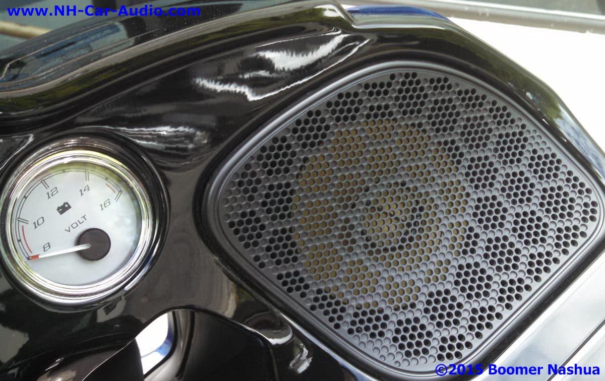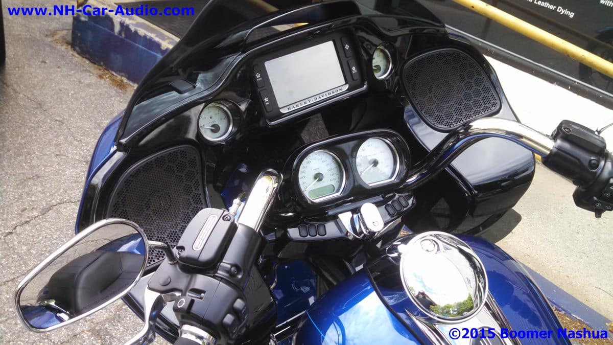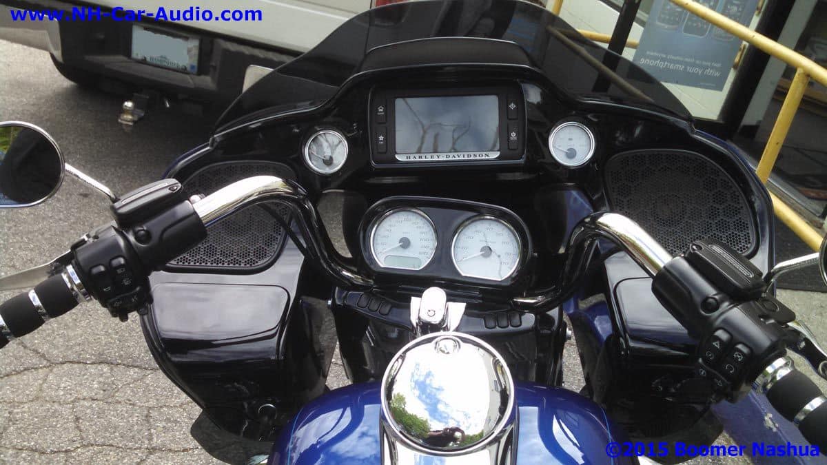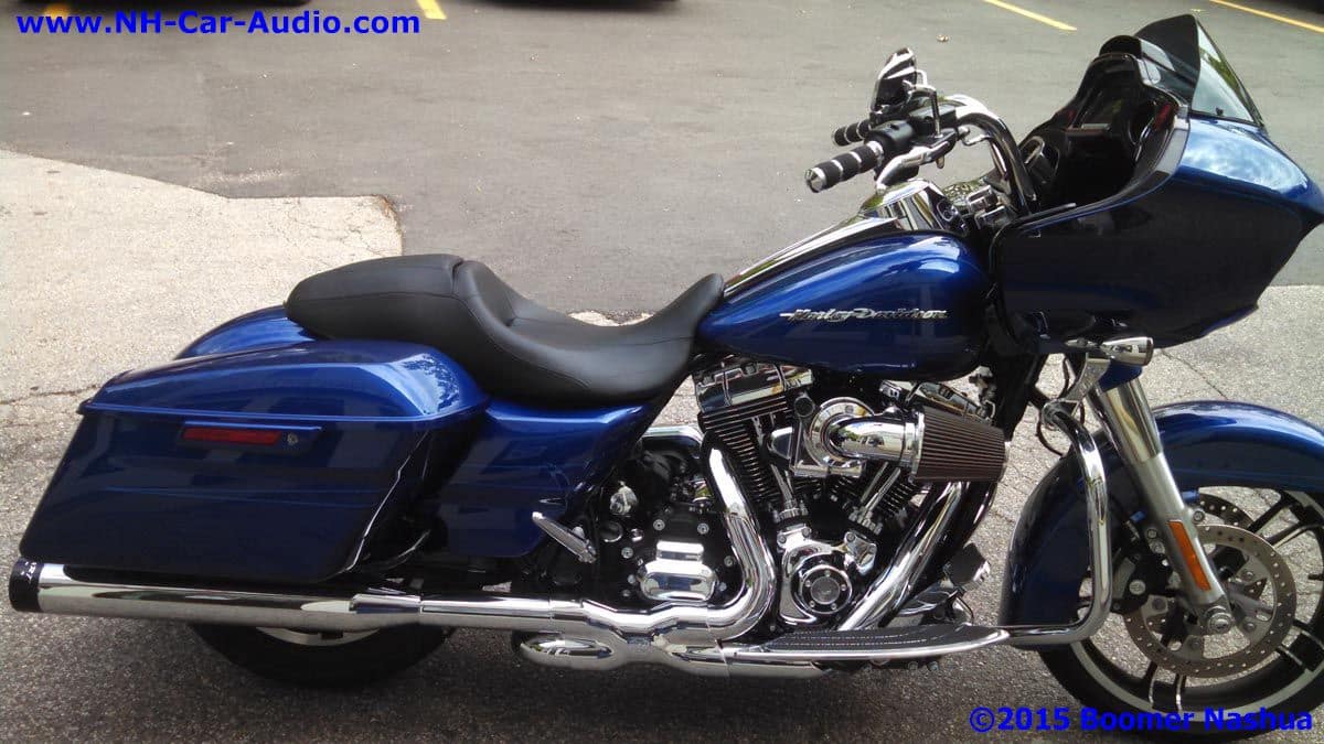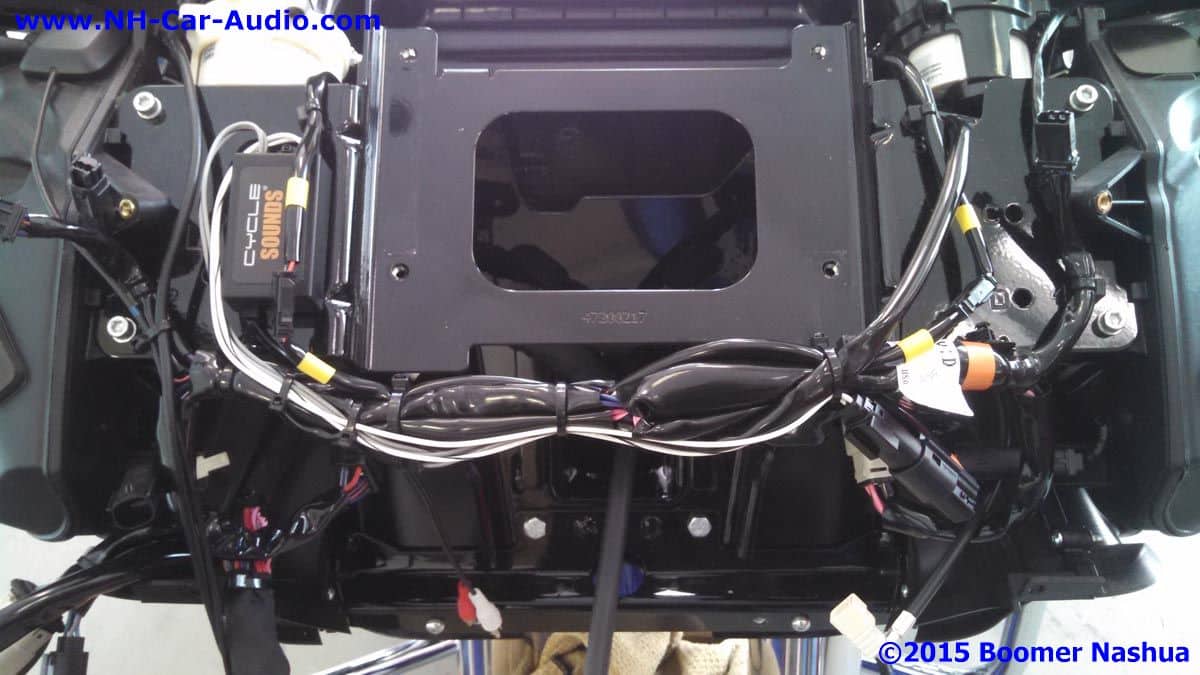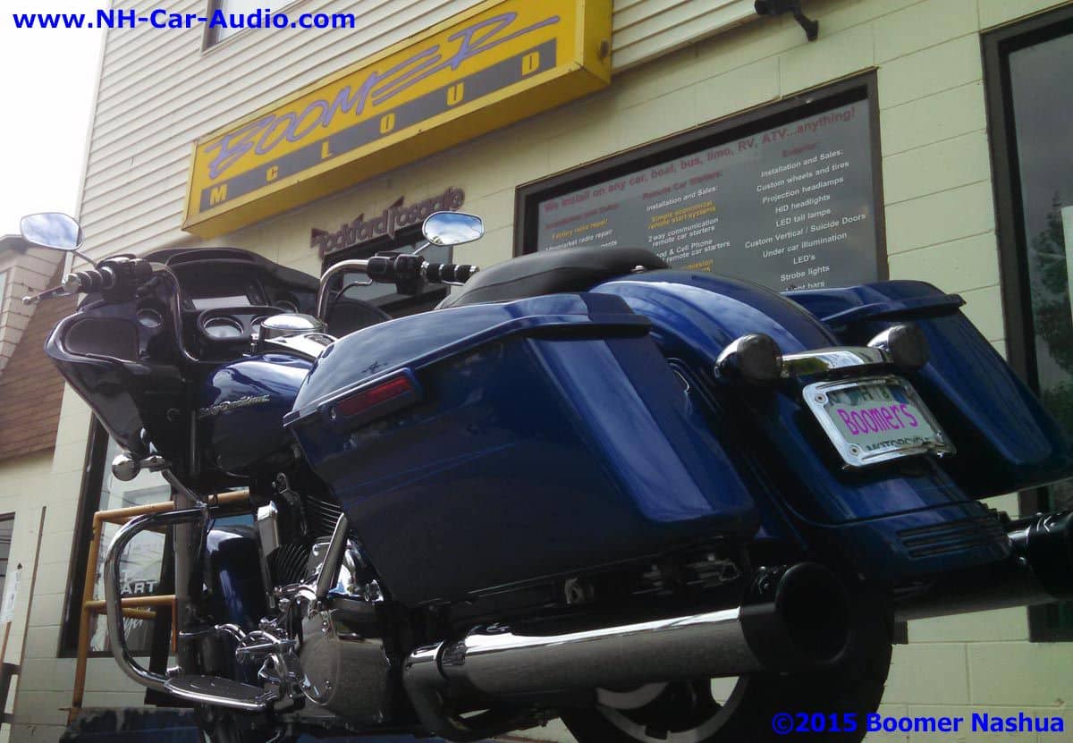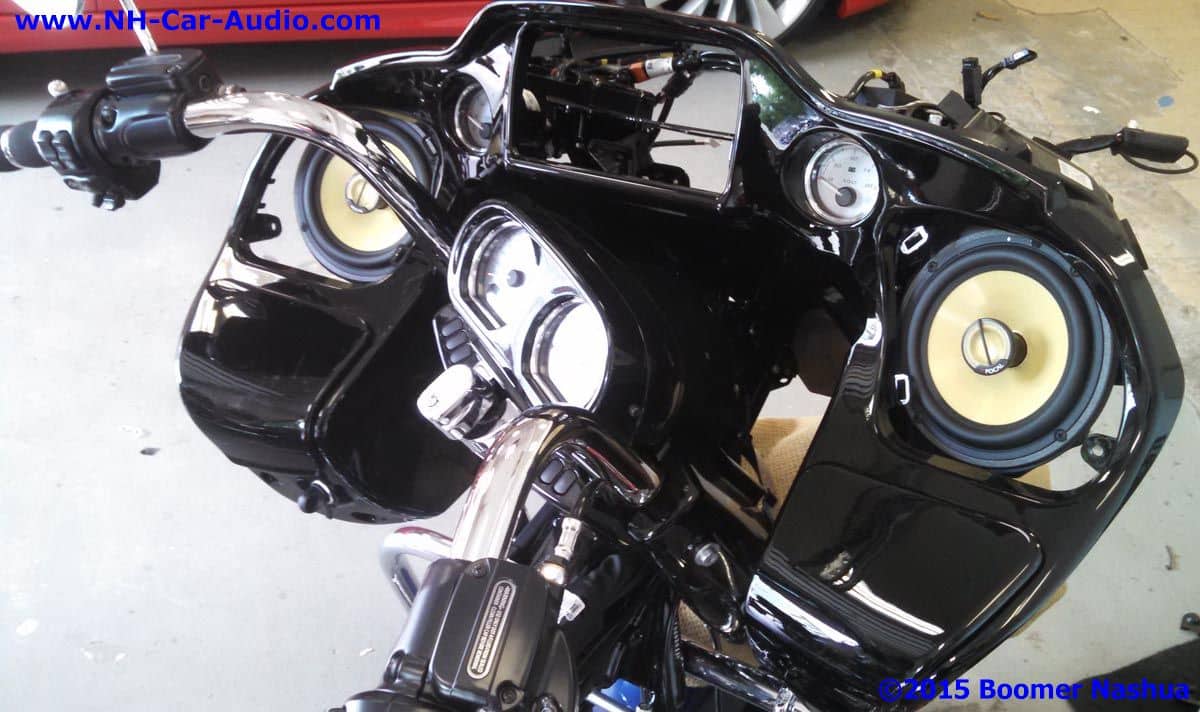 Here is how you do a 2015 Harley Bagger upgrade the right way. First, you get right sized Focal Kevlar speakers that will fit into the original housings for a great sound and retained stock look. Second, when you add a amplifier for some extra sound, you tap and thread it into the radio bracket. The threaded mount keeps the installation looking factory. Finally, all the wiring must be carefully routed with all joints covered by heat shrink tubing for reliability, remember neatness always counts. That Arc Audio amp will certainly appreciate correctly installed wiring and perform even better than you thought possible. We love motorcycle custom work here at Boomer Nashua, this 2015 Harley bagger upgrade is yet another great looking installation.![]()