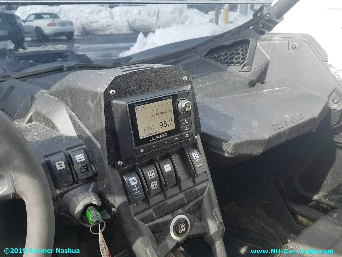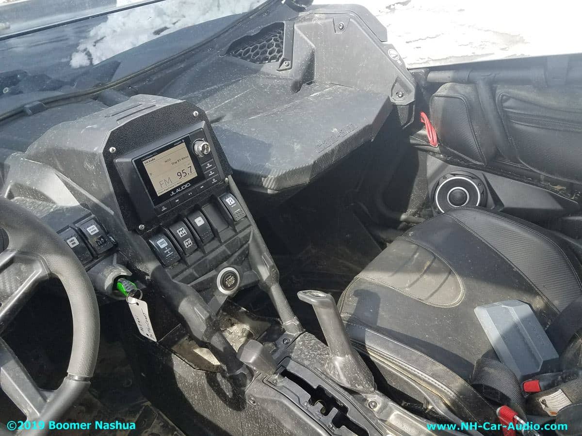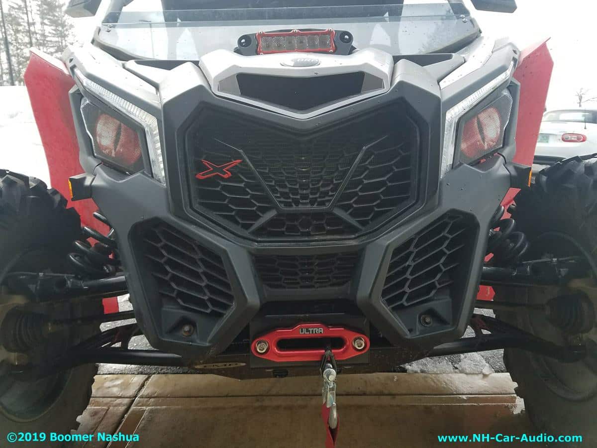 The Can Am Maverick has so much potential for add-ons. Boomer Nashua had the honor of providing a few great add-ons for this one. Check out the new sound system, the front light bar, custom media control panel, and even a new winch. We do all sorts of 12 Volt system upgrades, as a result Boomer Nashua is not just a car only custom install company.