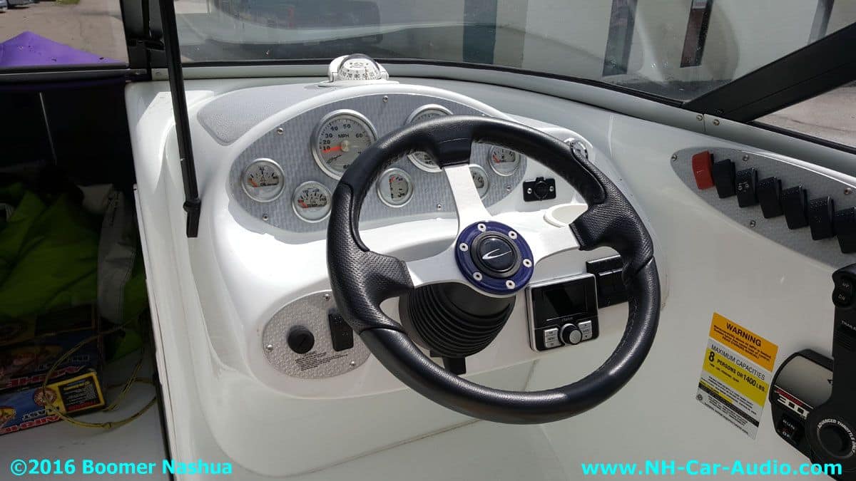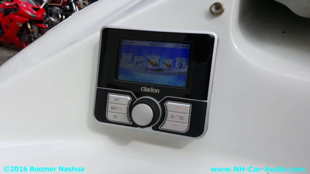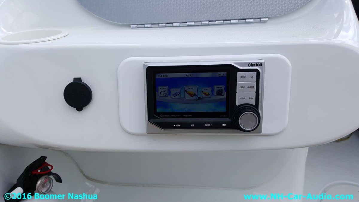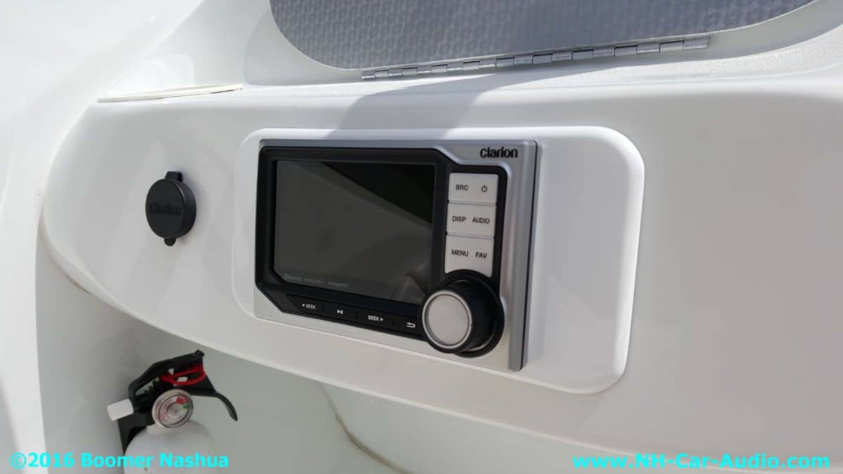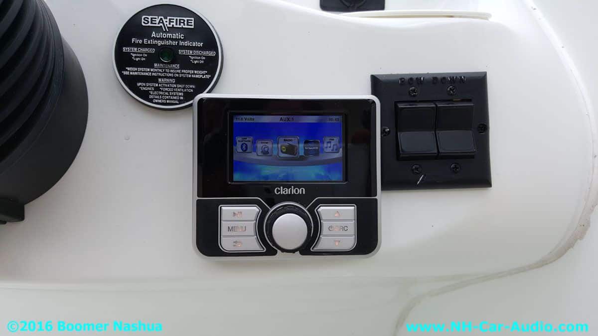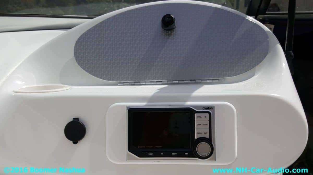 A Clarion full color multimedia controller is the best way to create a Baja Boat Premium Audio installation. A great system for this boat, we were able to install two controllers for more flexibility for the crew and passengers. We really like the nice waterproof sound that you get by using JL Audio marine speakers. We created a color matched custom radio mounting panel, that with the nice JL Speaker grills made the install take on an invisible factory camouflage. The only time you know its not is when you turn it on and with the first few notes the secret is out. The snazzy color control panels don’t hurt either. gallery-spacer