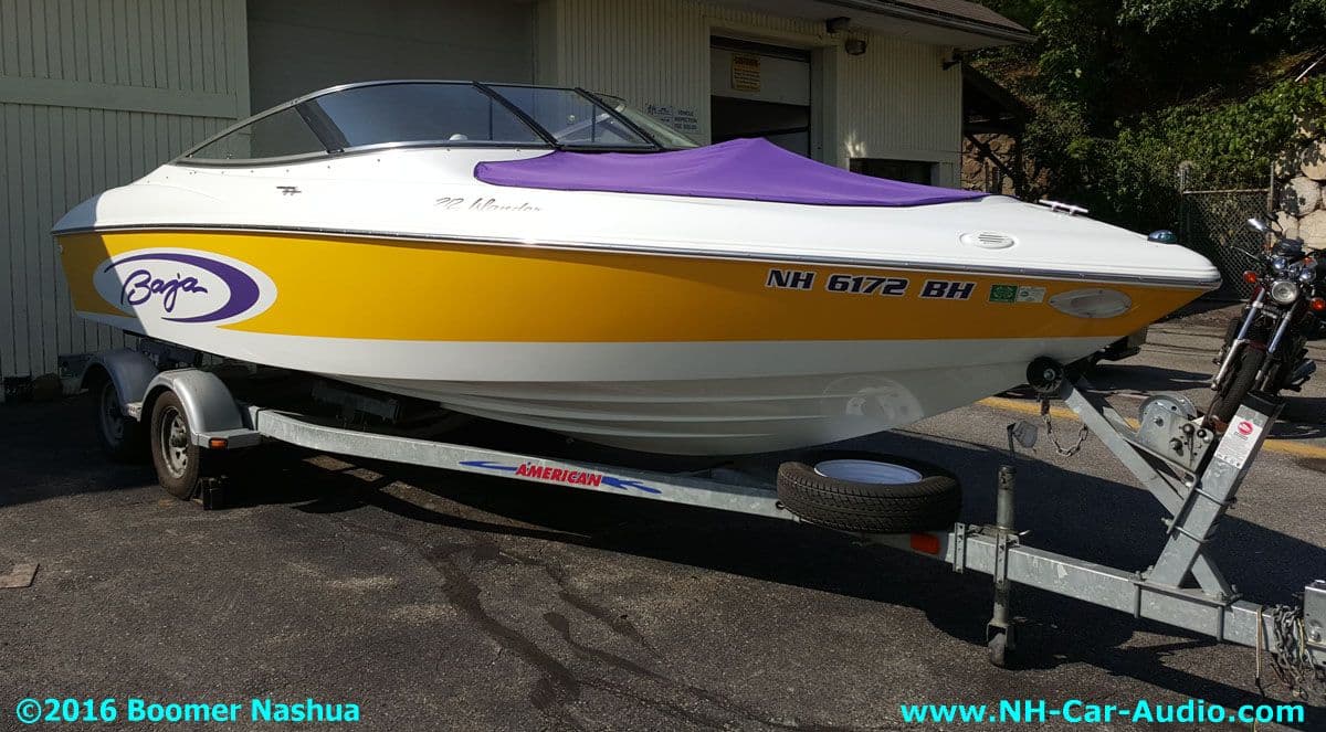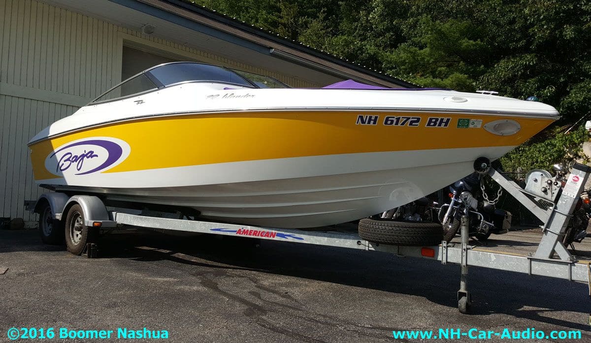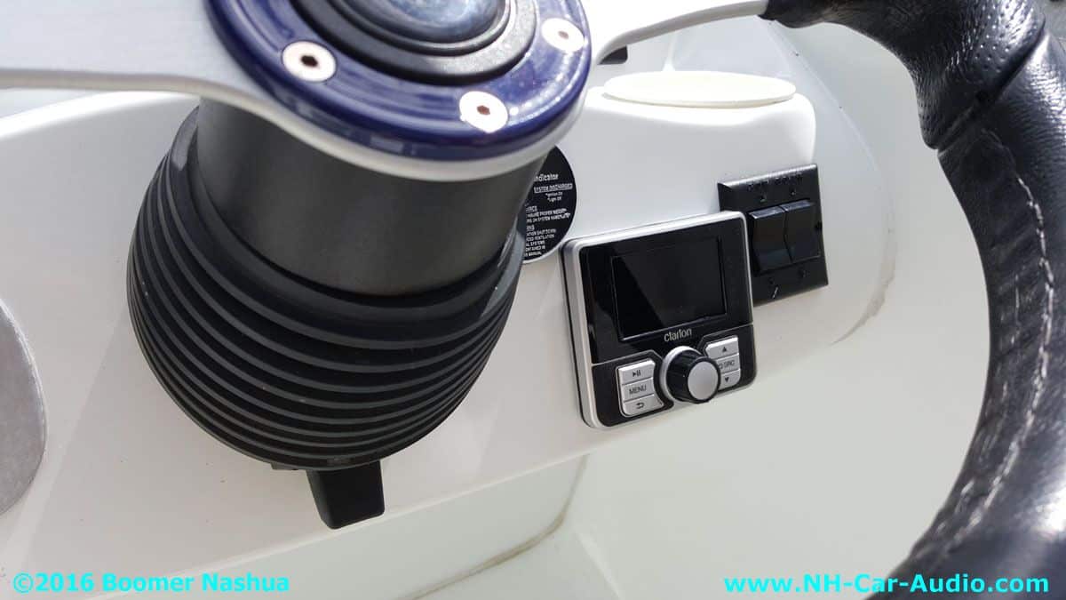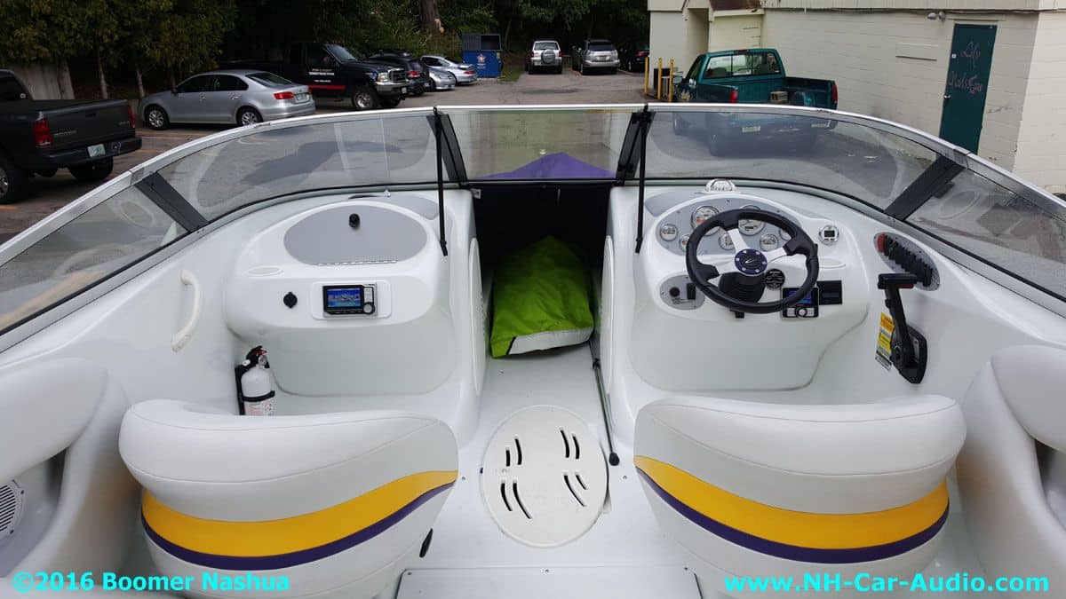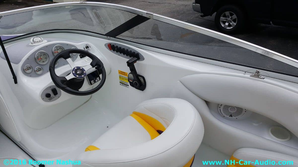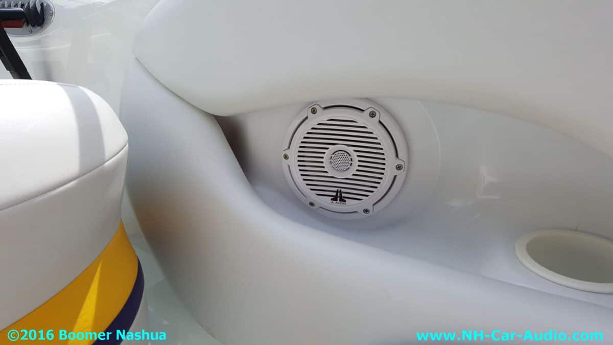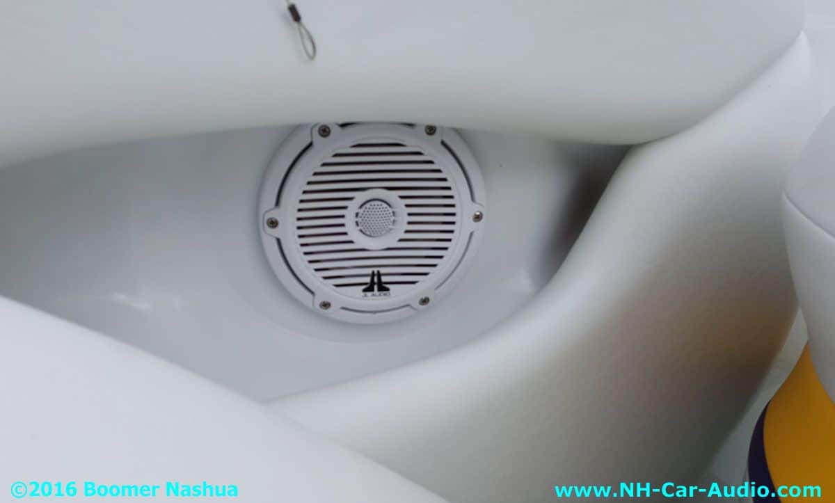 A Clarion full color multimedia controller is the best way to create a Baja Boat Premium Audio installation. A great system for this boat, we were able to install two controllers for more flexibility for the crew and passengers. We really like the nice waterproof sound that you get by using JL Audio marine speakers. We created a color matched custom radio mounting panel, that with the nice JL Speaker grills made the install take on an invisible factory camouflage. The only time you know its not is when you turn it on and with the first few notes the secret is out. The snazzy color control panels don’t hurt either. gallery-spacer