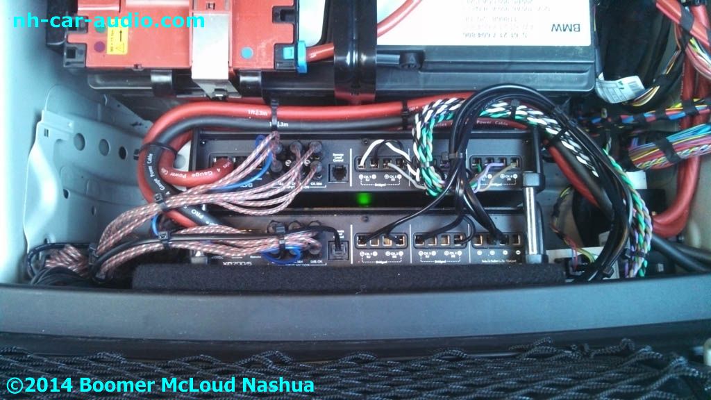 This BMW M6 custom installation project included premium audio upgrade with Focal rear speakers with 11 channels of amplification. There is also a K-40 hidden radar detector system with laser diffusers. Check out our gallery and see the hidden radar indicators. Can you see the diffusers, look at the front view, nice car!