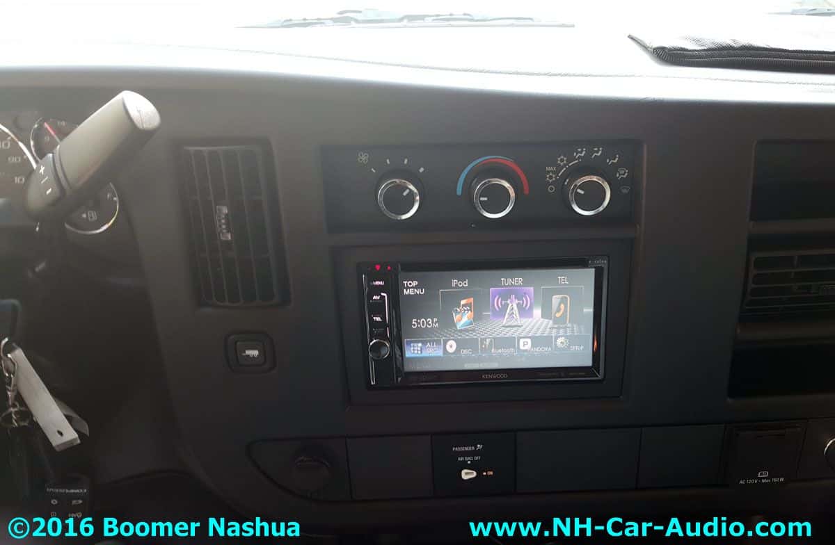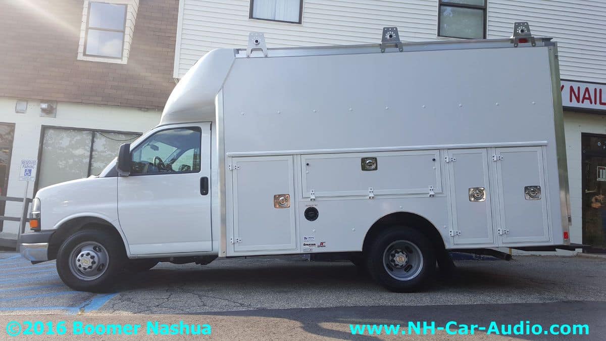 This totally unassuming Chevy Box Truck received some nice new tech upgrades. For starters we replaced the radio with a Kenwood blue tooth multimedia system. We then installed a remote starter with keyless entry. And since we had the nice multimedia display on the Kenwood, we added a back-up camera to make everyone safer when the Big box truck backs up. This truck’s driver is now happy because they can get the truck warmed up before hitting the road, and everyone lives happily ever after. Some upgrades are fun, others like these are just smart business.![]()