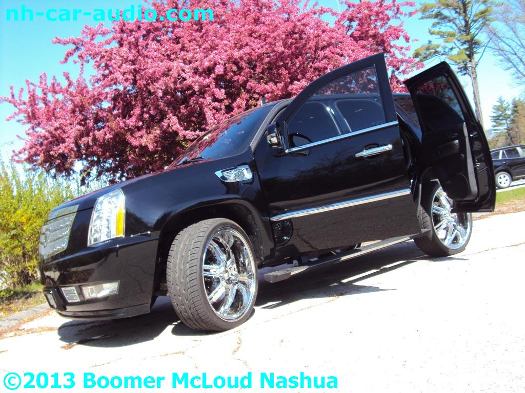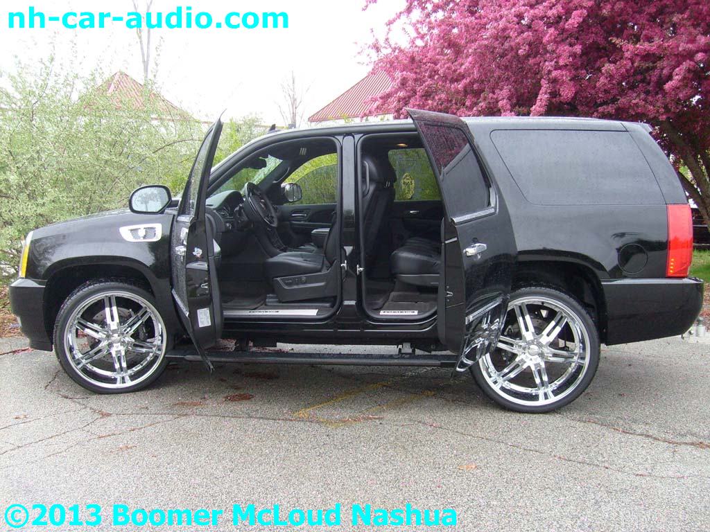Boomer Nashua Mobile Electronics had the honor to be part of a most amazing Cadillac Escalade suicide door custom project. We incorporated more features than there is space to discuss here. There should be a feature article here under our press blog at some point in the future, hold us to it. I like the escalade suicide doors part the best. We almost provide a do-it-your-self step by step here, but don’t try this project at home. Look close at the pictures and custom features and you will wonder what we can do for you. We can do amazing custom work for all sizes of budgets, just try us.