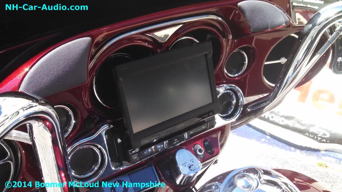 If it can be done, we here at Boomers can figure out a way. This Harley Flip out LCD screen is an excellent example of that. This was a very unexpected solution to installing a new sound system on a motorcycle. Nice effect, and nice custom paint, we succeeded in taking this bike to a whole new level. We can do this for you, or explore other interesting installation options that you might find both unusual and interesting. Bring your Harley in and lets talk.gallery-spacer