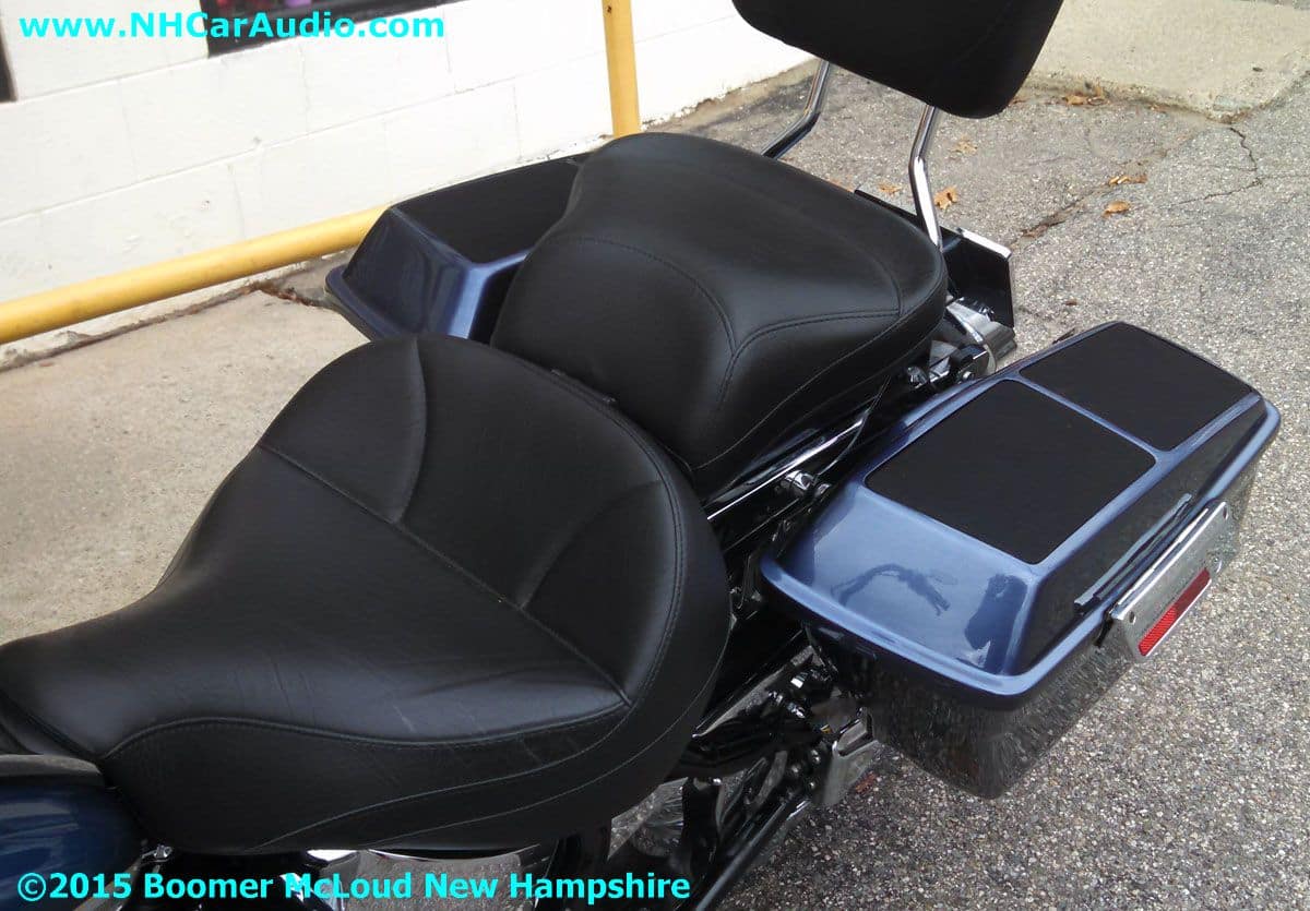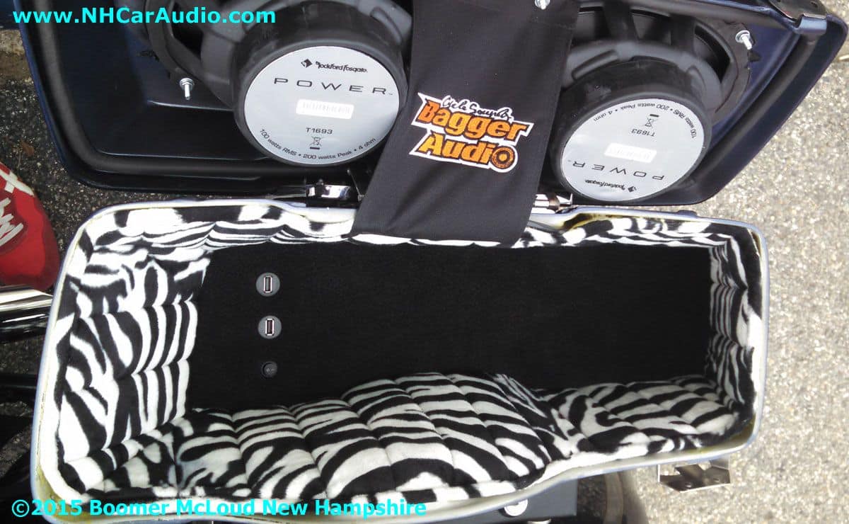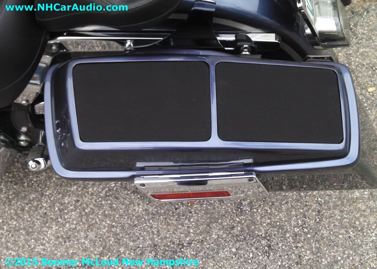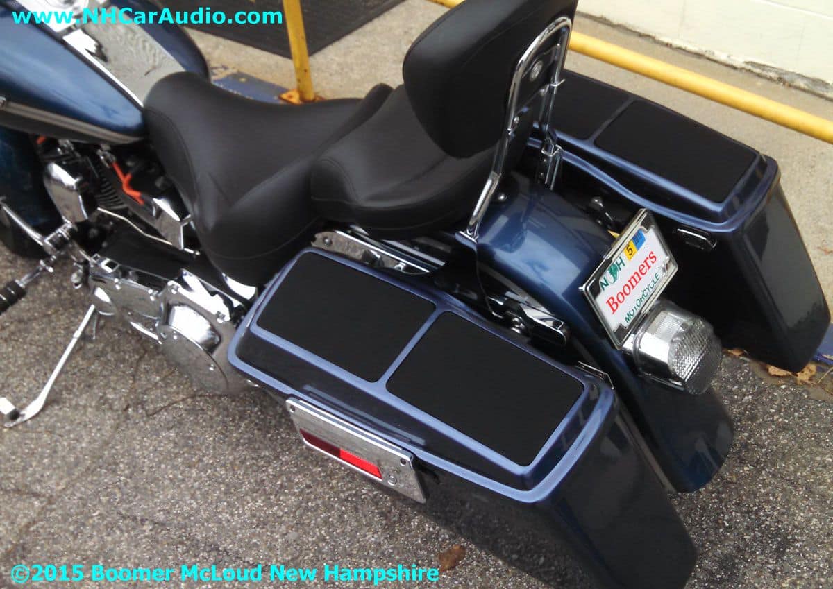 A Harley Sounds Bag Installation is a great way to get BIG SOUND on your bike that will be heard but not seen. Can’t see the Rockford Fosgate Amplifier, or the Quad Speaker installation as they are hidden inside a clever installation. The sound is unbelievable, there is even a hidden USB charging station to keep you fully juiced on the road. Expect top notch innovation from Boomers Nashua Mobile Electronics, we will always be here for you and your bikes needs.![]()