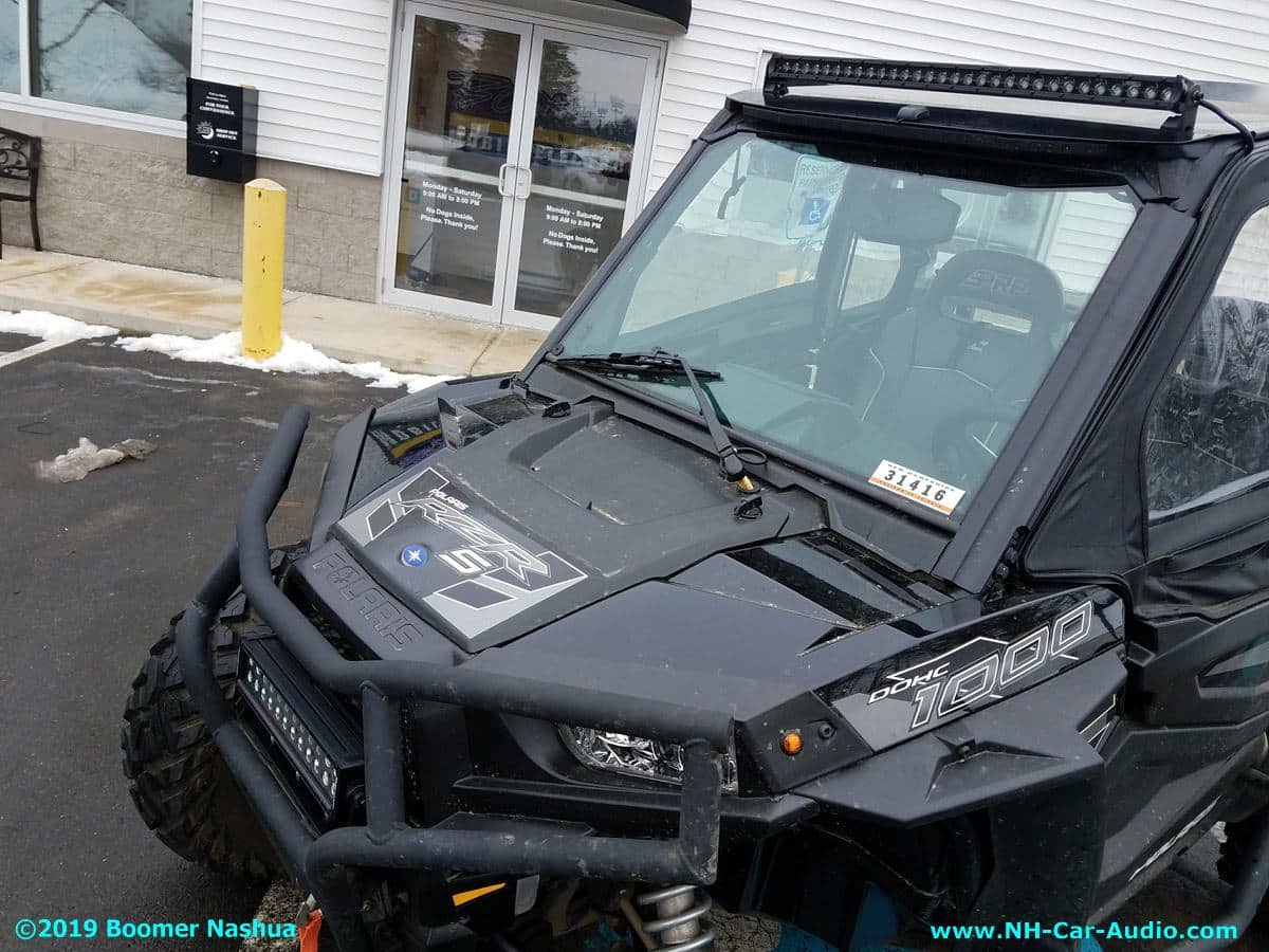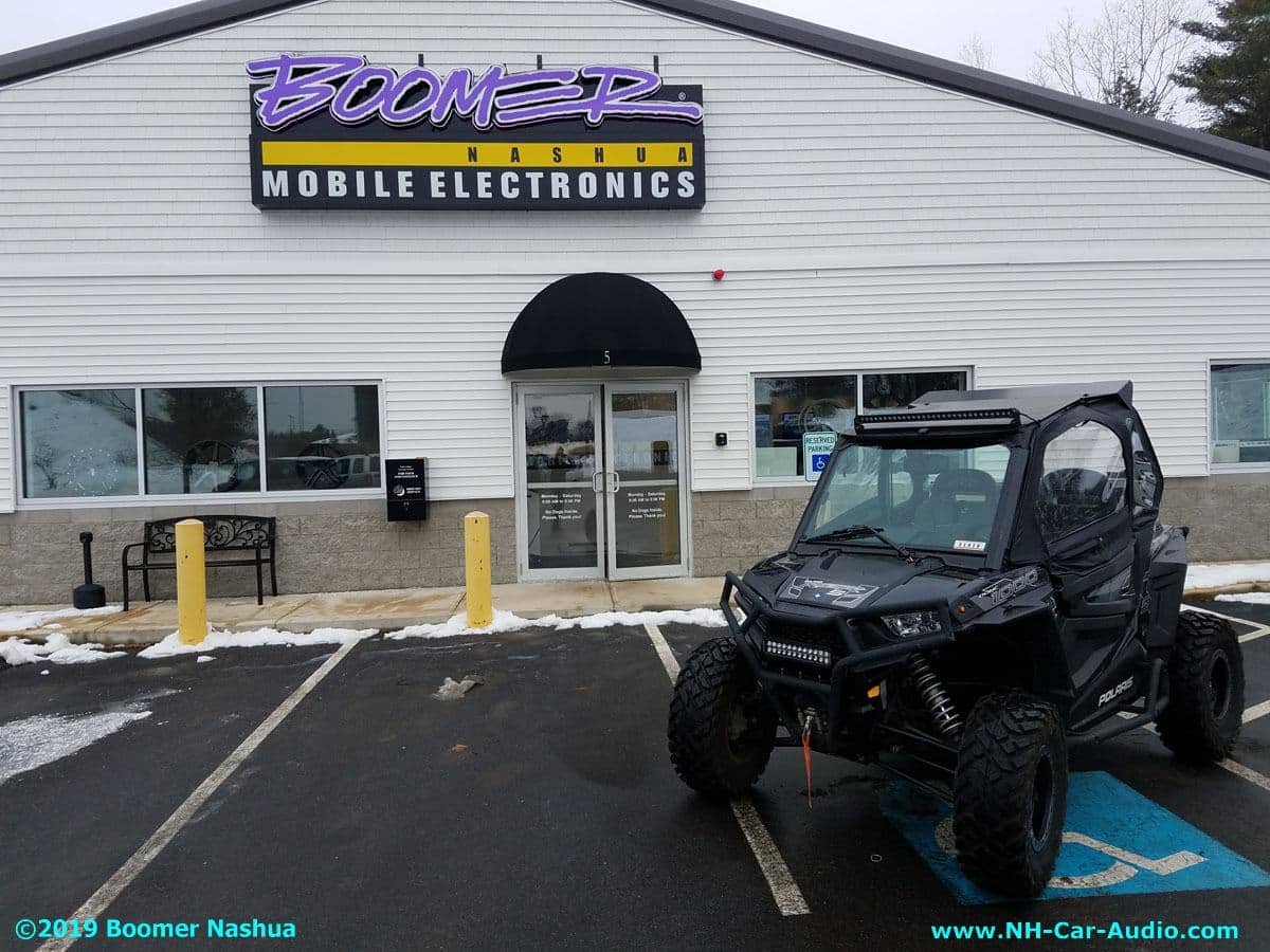 The Polaris RZR off road ATV is a remarkably versatile vehicle. Boomers increased that versatility by adding a variety of 12 Volt goodness. This included a new Marine grade radio head unit and a speaker upgrade to go with it. Now that we can hear better, we added an LED roof mounted light bar. Finally, in case the Polaris RZR or its traveling buddies get stuck, we installed a really nice winch. All of these have the factory install look that Boomer Nashua professional installers do every day.