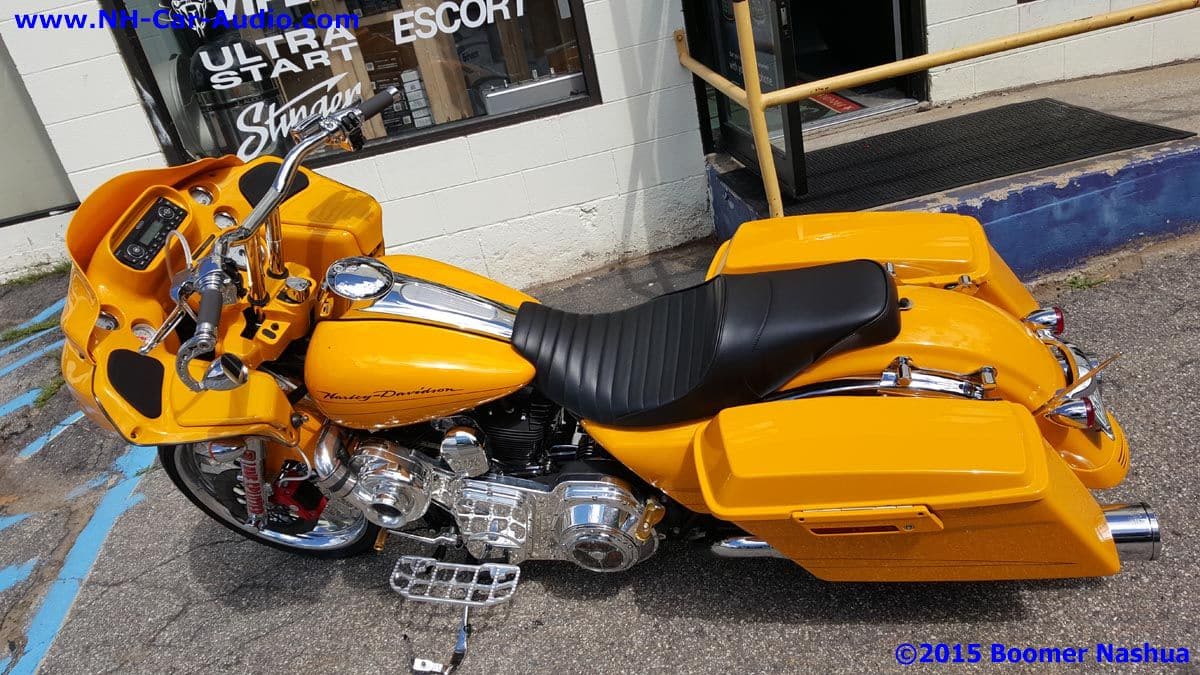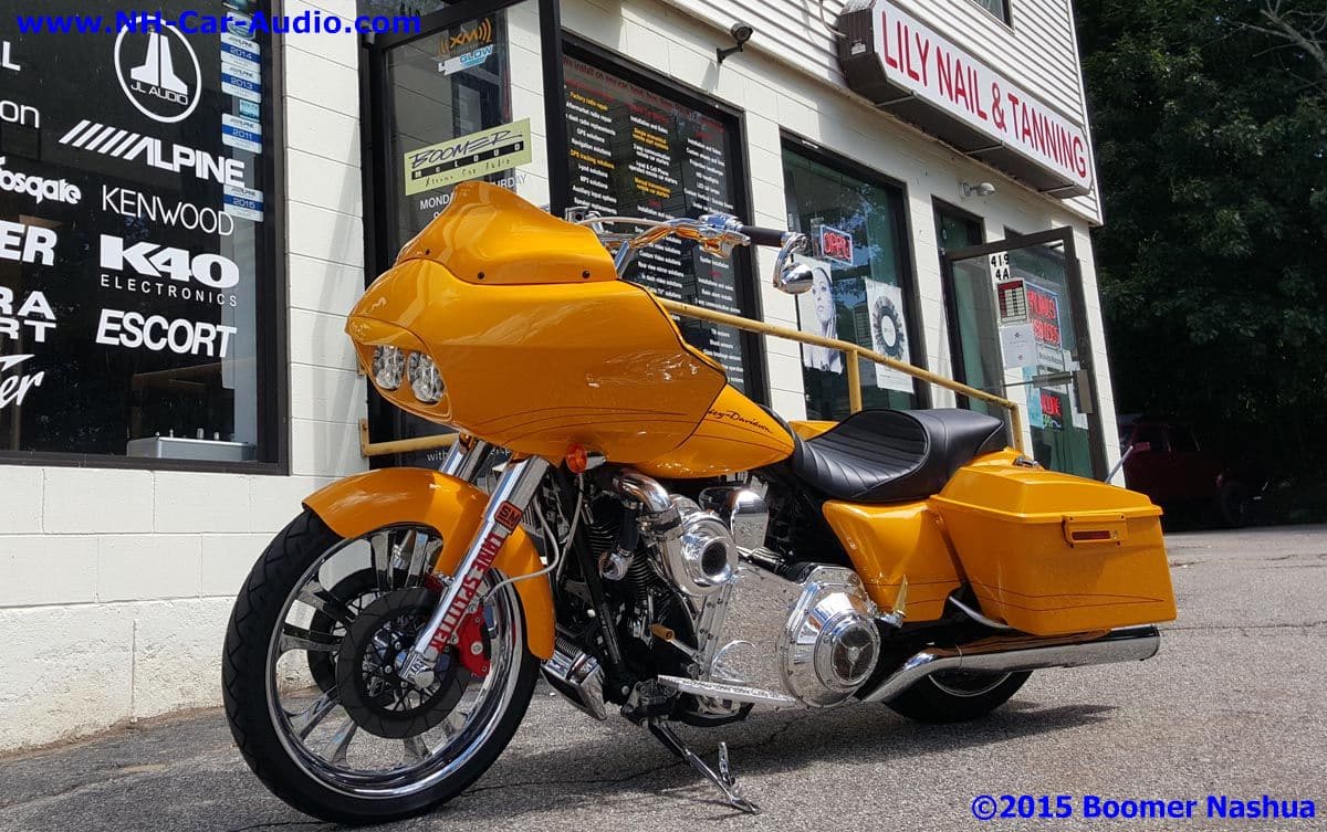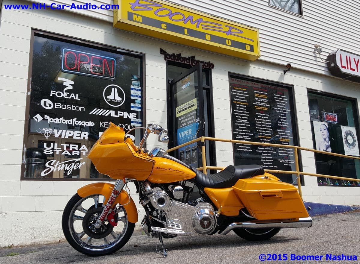 This really sharp supercharged Harley Roadglide came in to get the same sort of boost for its audio systems as it already had for the motor. They say that adding a supercharger will get you a 50% performance boost which sounds amazing. What is also amazing is the improvement in the sound performance that we achieved by installing an Arc Audio amplifier and Focal Kevlar speakers. Overall this bike is a real head turner, from the color, the supercharger, and now from the awesome sound. You may not have a supercharged Harley road-glide, but you can still get a premium audio system for your bike. Stop in and find out more information and get some ideas today.![]()
