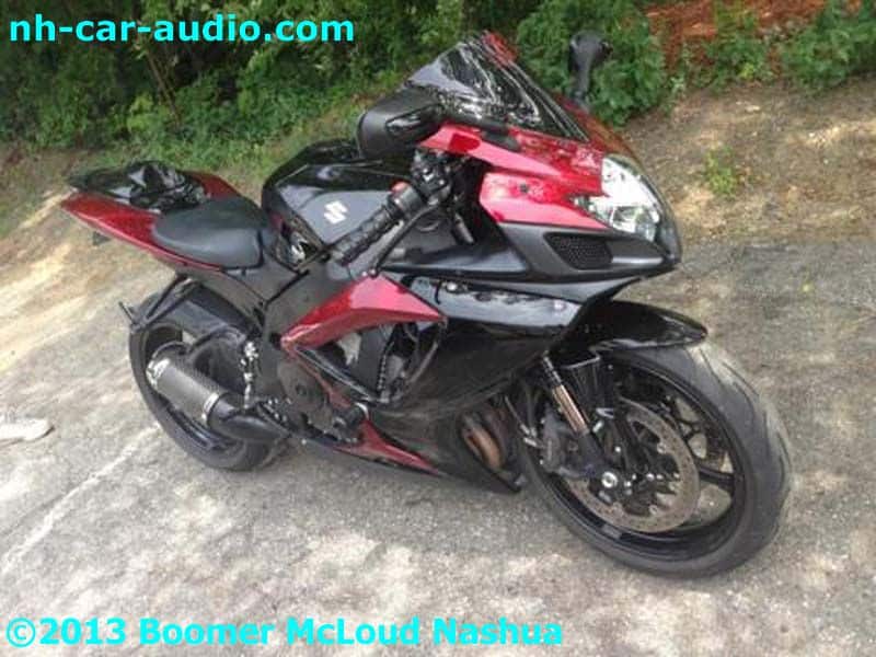 Boomers does not just do rides with four wheels, we do anything you want us to add a better look, a better sound, or just make it the way you have always wanted it.  We also don’t just do Harley’s (For the Harley owner: we do like Harley’s alot).  Here is a grea Suzuki Street Bike Custom project we have done. All of these example galleries serve one purpose, to give you ideas for your own Bike project. When looking through the various motorcycle gallery pictures see all of the different ways we can mount speakers on a suzuki street bike custom or any bike you may own.  Didn’t think it could be done like that? Guess again.gallery-spacer