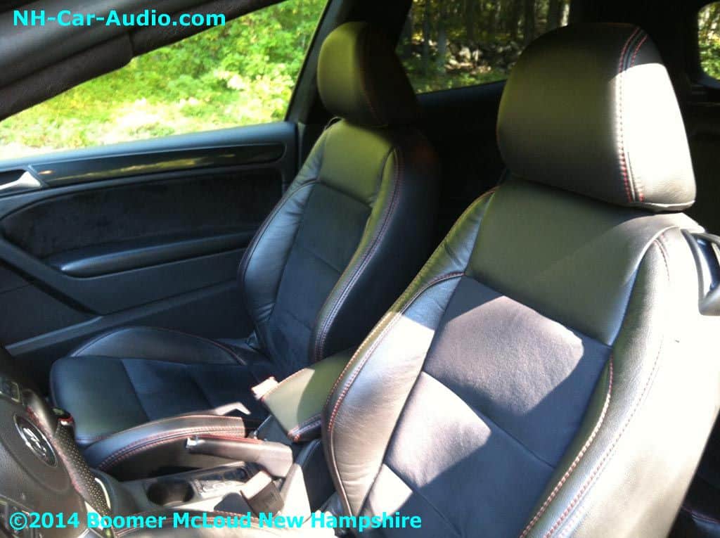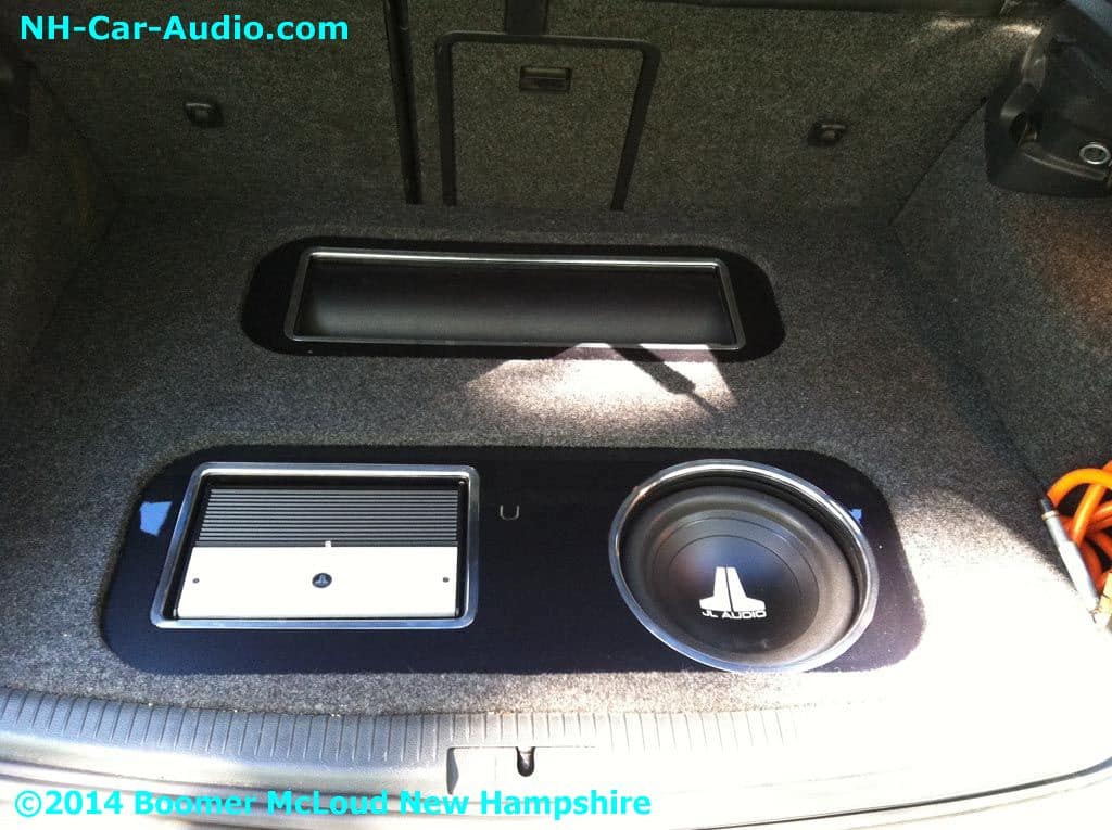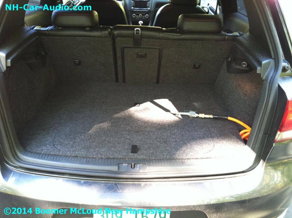 We added new wheels and airbags to this VW GTI Custom installation. We didn’t want to stop there, and added custom interior, a nice display floor for the rear subs and air ride pressure tank. Nothing looks as good as custom seats with matching door panels. The JL Audio amp and sub look so happy in their new home don’t you think?